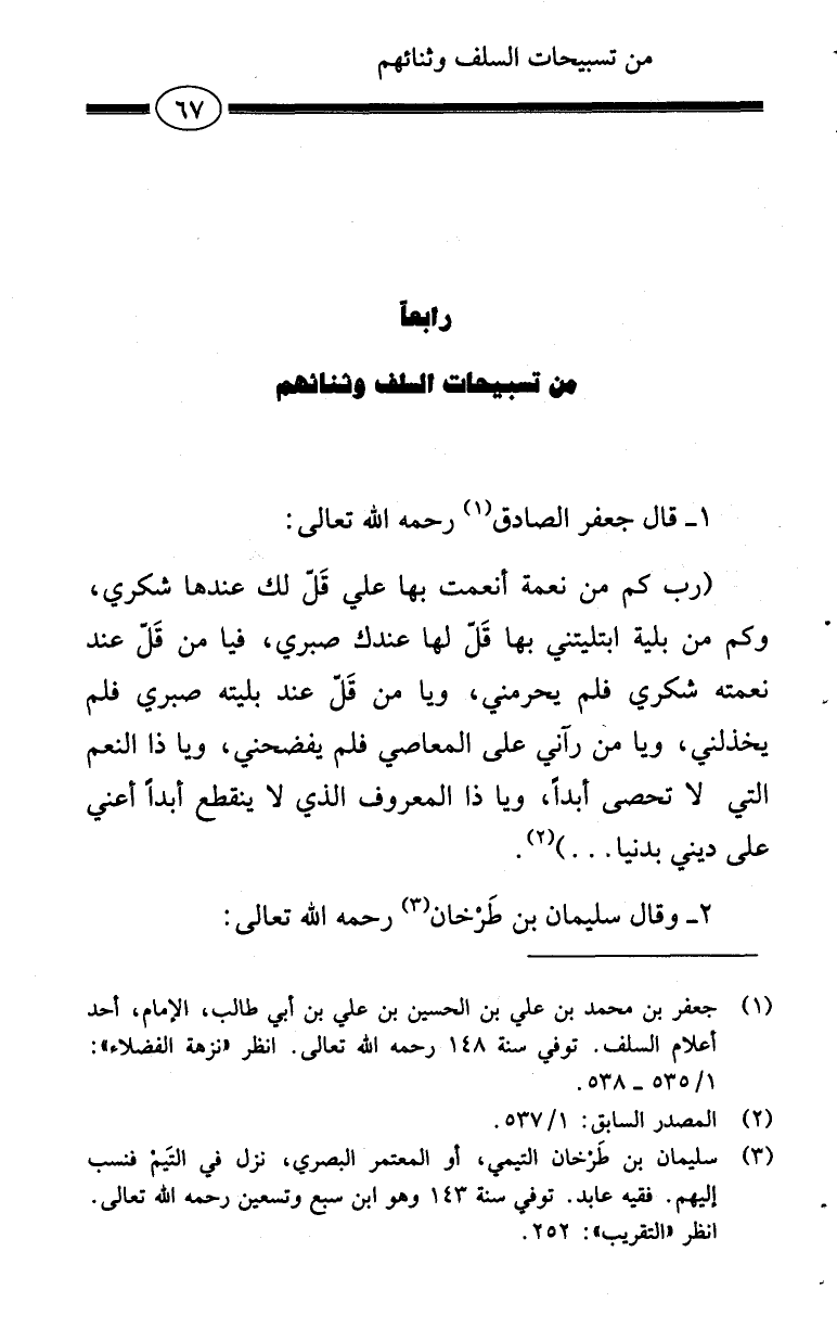 من تسبيحات السلف وثنائهم