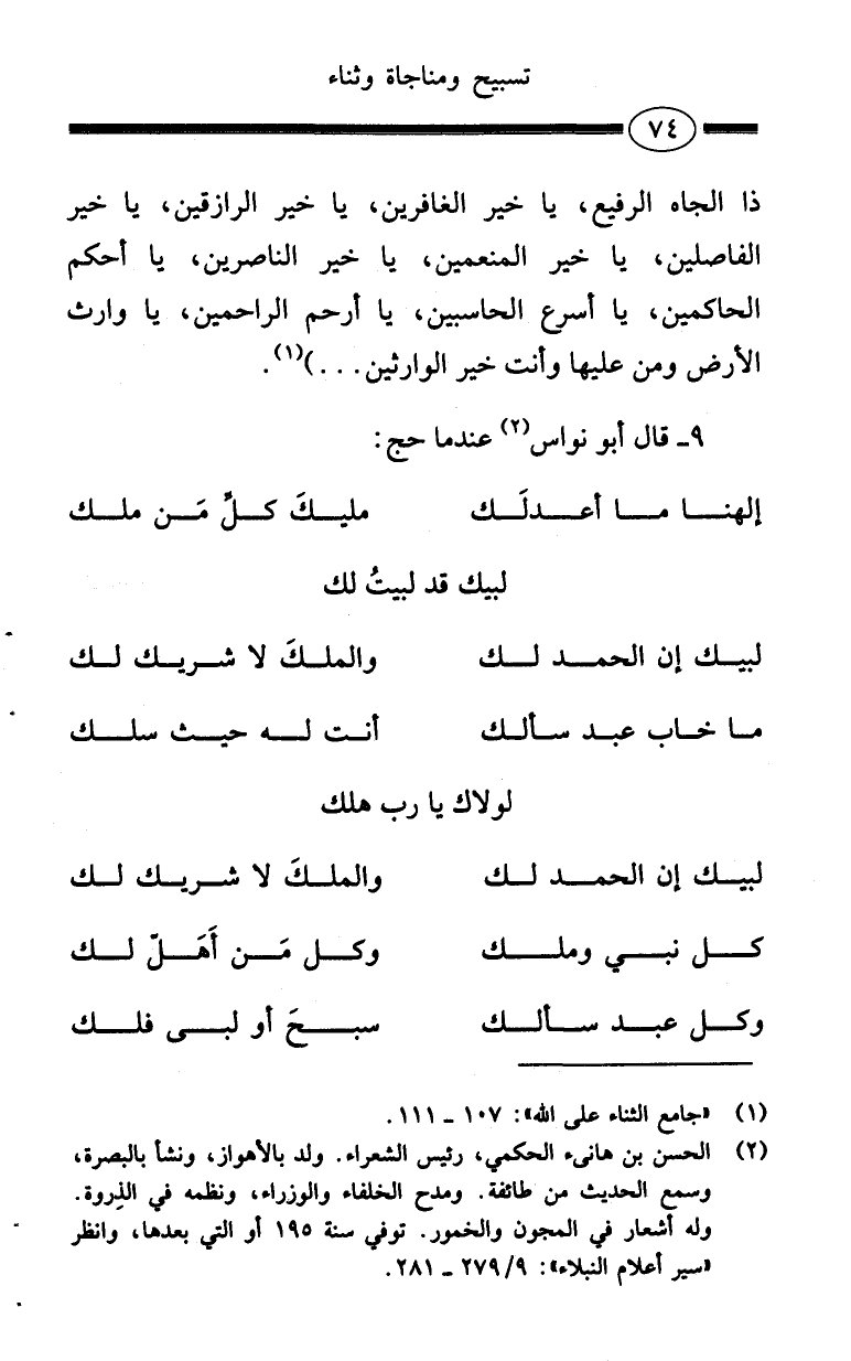 كل نبي وملك ... وكل مَن أَهَلّ لك