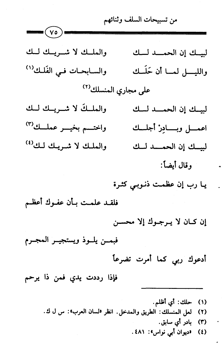 على مجاري المنسلك (¬2) ... لبيك إن الحمد لك ... والملكَ لا شريك لك