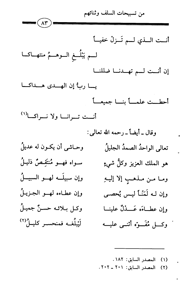 أحطت علماً بنا جميعاً ... أنت ترانا ولا نراكا (¬1)