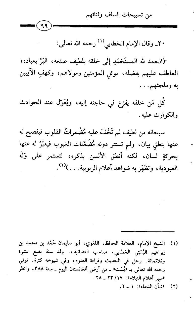 20 - وقال الإمام الخطابي (¬1) رحمه الله تعالى: