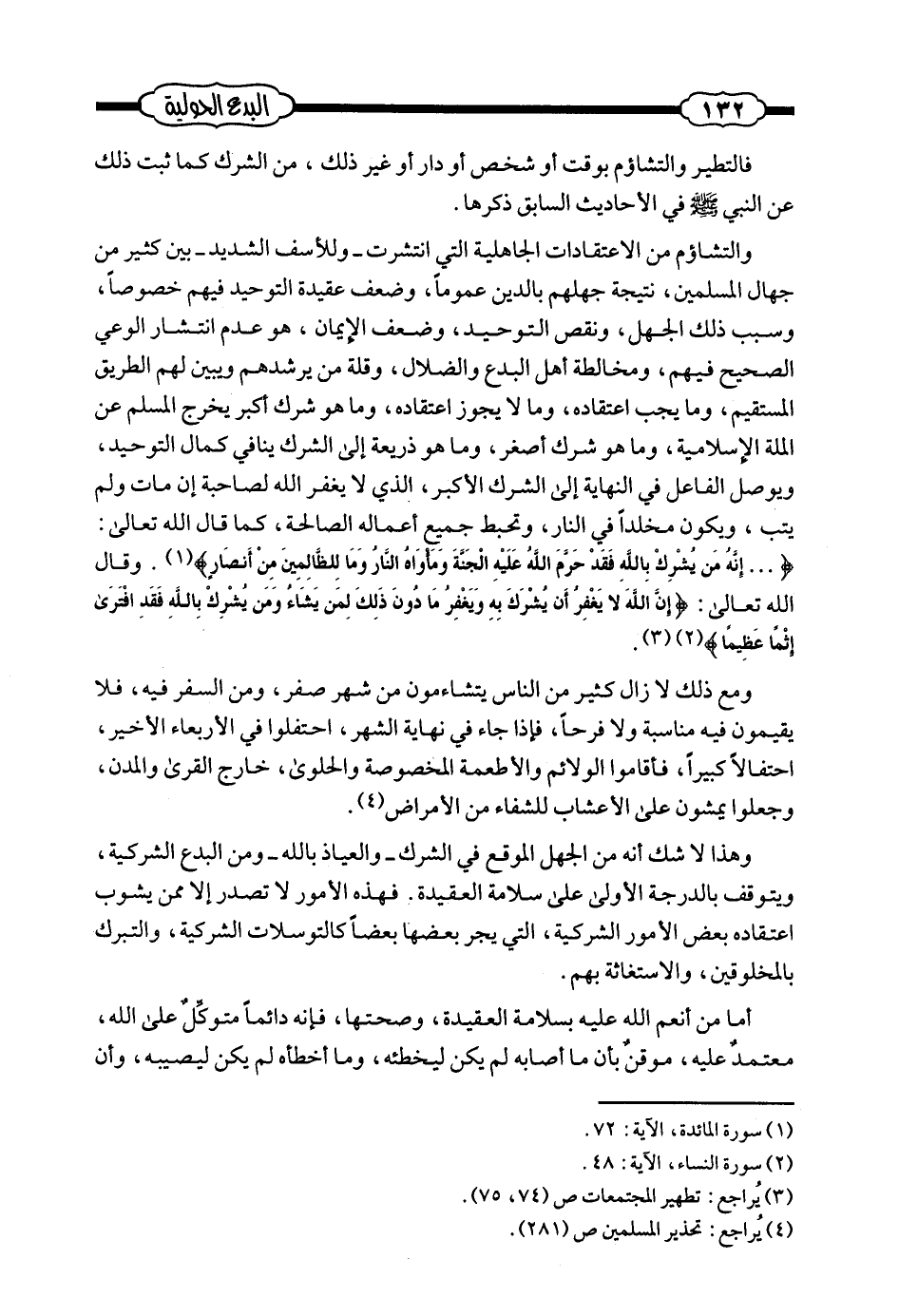(¬4) - يراجع: تحذير المسلمين ص (281) .