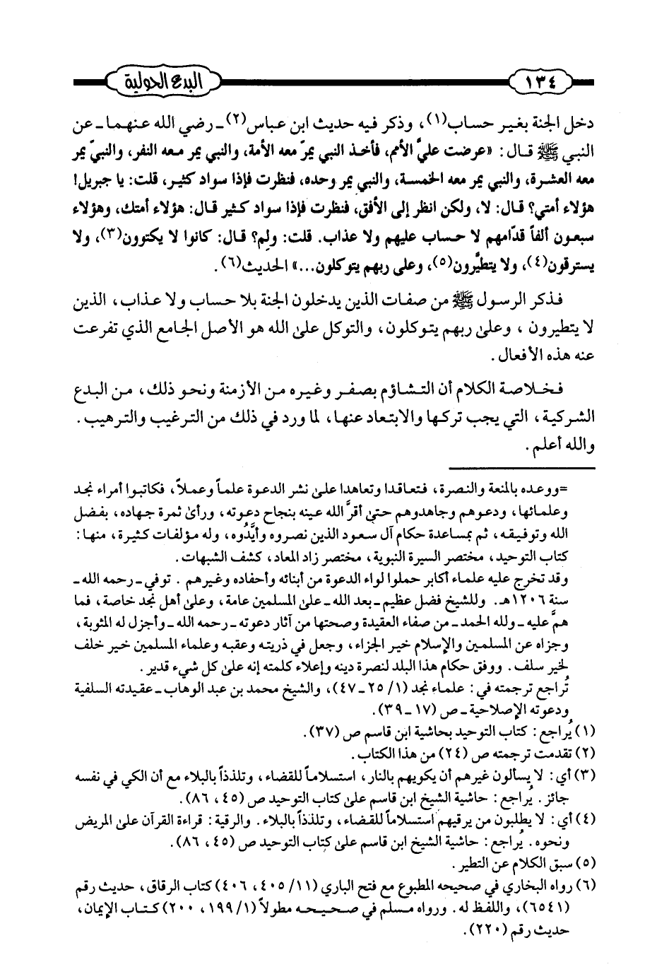 (¬1) - يراجع: كتاب التوحيد بحاشية ابن قاسم ص (37) .