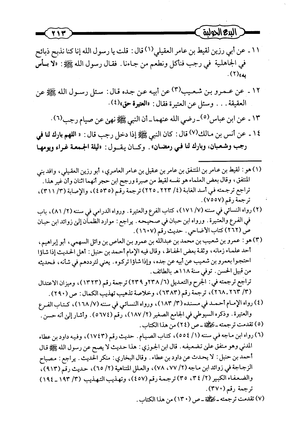 عن أبي رزين لقيط بن عامر العقيلي قال: قال يا رسول الله إنا كنا نذبح ذبائح في الجاهلية في رجب فنأكل ونطعم من جاءنا. فقال رسول الله صلى الله عليه وسلم: ((لا بأس به)) (¬1) .