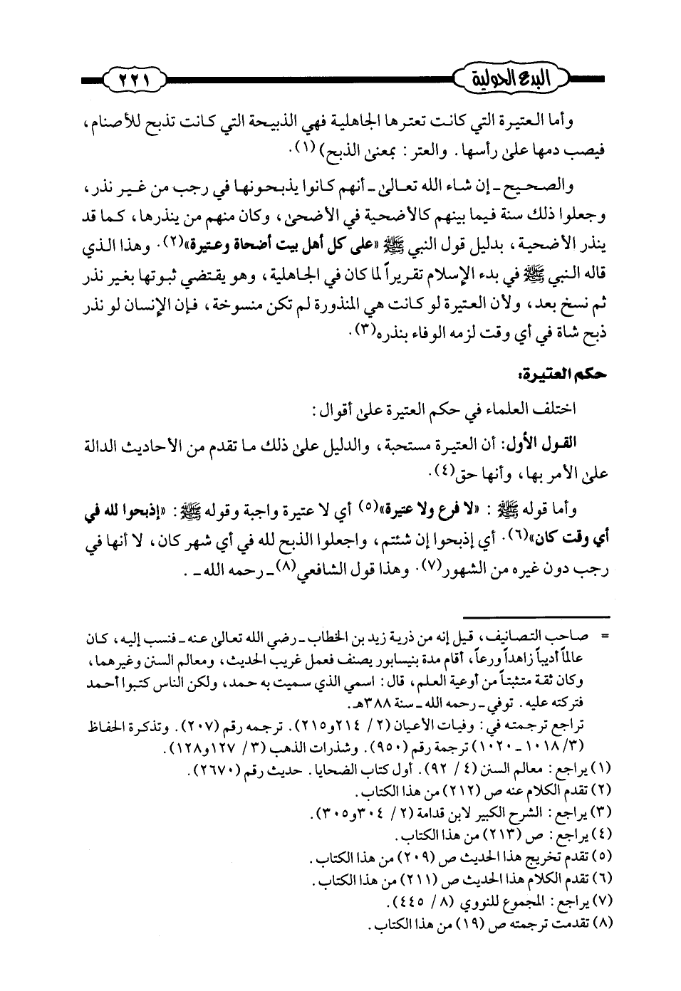 حكم العتيرة:
