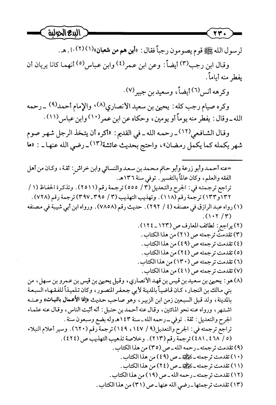 وكره صيام رجب كله: يحيى بن سعيد الأنصاري، والإمام أحمد - رحمه الله - وقال: يفطر منه يوماً أو يومين، وحكاه عن ابن عمر وابن عباس.
