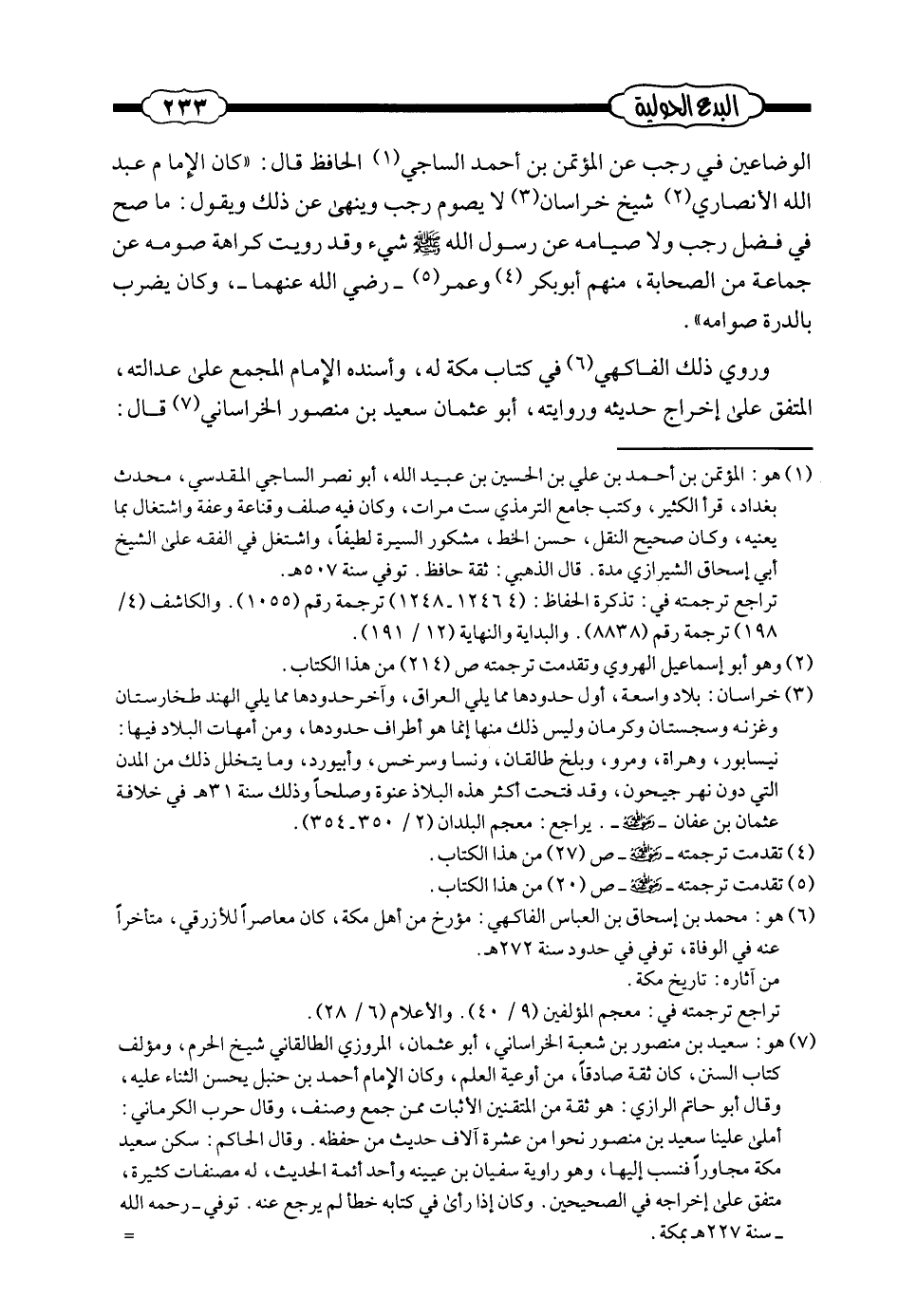 (¬1) - خراسان: بلاد واسعة، أول حدودها مما يلي العراق، وآخر حدودها مما يلي الهند طخارستان وغزنه وسجستان وكرمان وليس ذلك منها إنما هو أطراف حدودها، ومن أمهات البلاد فيها: نيسابور، وهراة، ومرو، وبلخ طالقان، ونسا وسرخس، وأبيورد، وما يتخلل ذلك من المدن التي دون نهر جيحون، وقد فتحت أكثر هذه البلاد عنوة وصلحاً وذلك سنة 31هـ في خلافة عثمان بن عفان رضي الله عنه -. يراجع: معجم البلدان (2/350-354) .