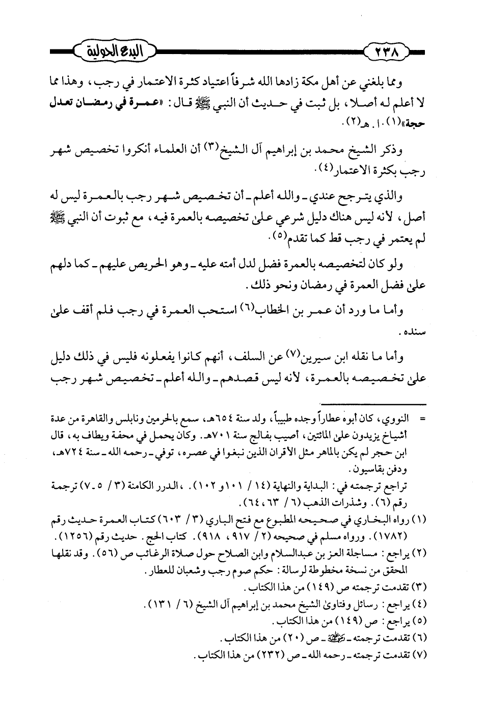 وذكر الشيخ محمد بن إبراهيم آل الشيخ أن العلماء أنكروا تخصيص شهر رجب بكثرة الاعتمار (¬3) .