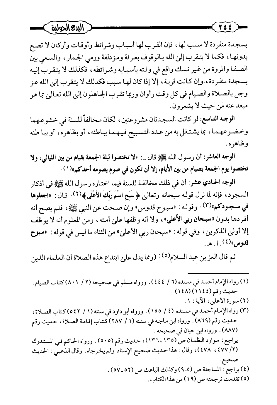 ثم قال العز بن عبد السلام: (ومما يدل على ابتداع هذه الصلاة أن العلماء الذين