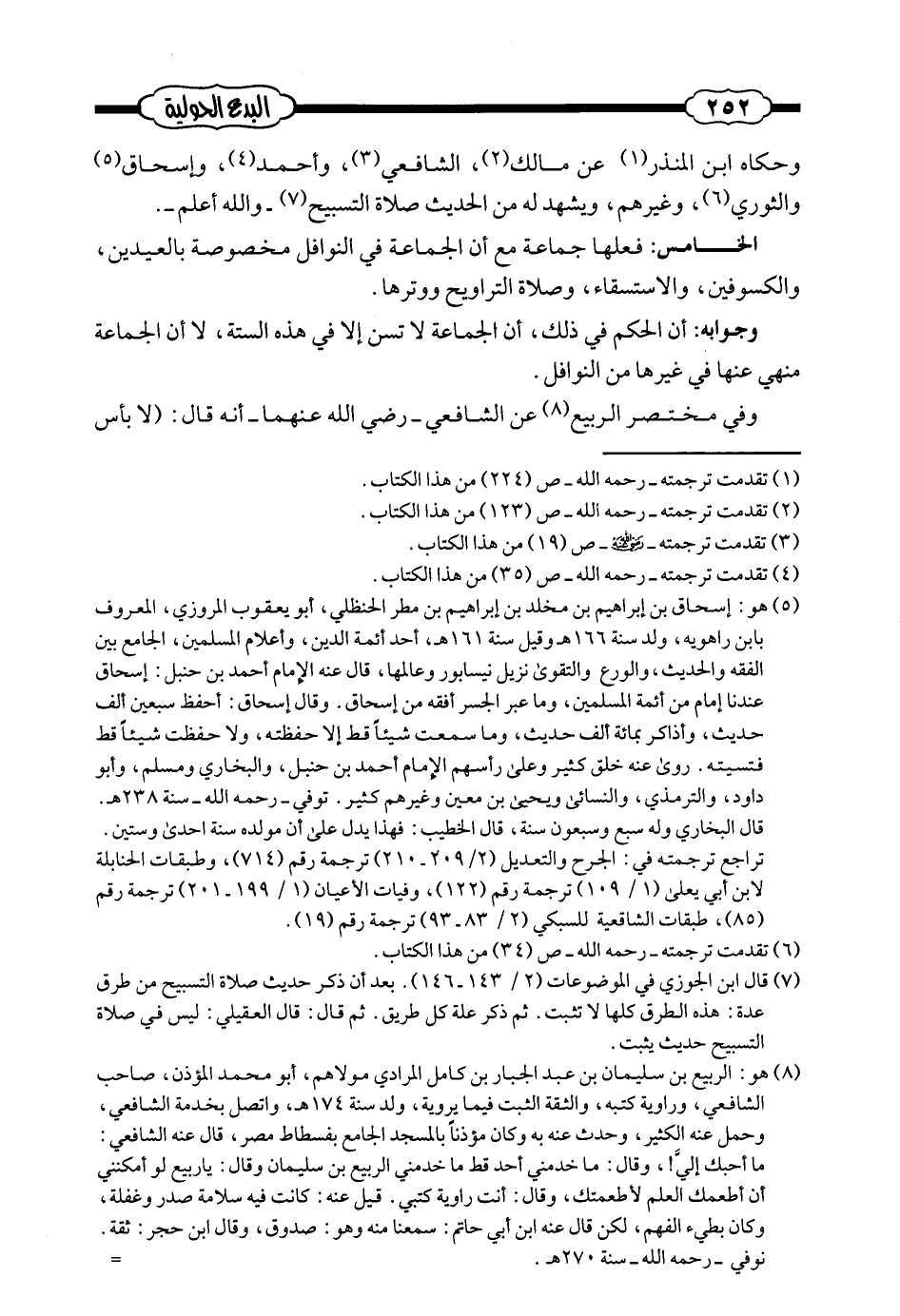 وجوابه: أن الحكم في ذلك. أن الجماعة لا تسن إلا في هذه الستة، لا أن الجماعة منهي عنها في غيرها من النوافل.