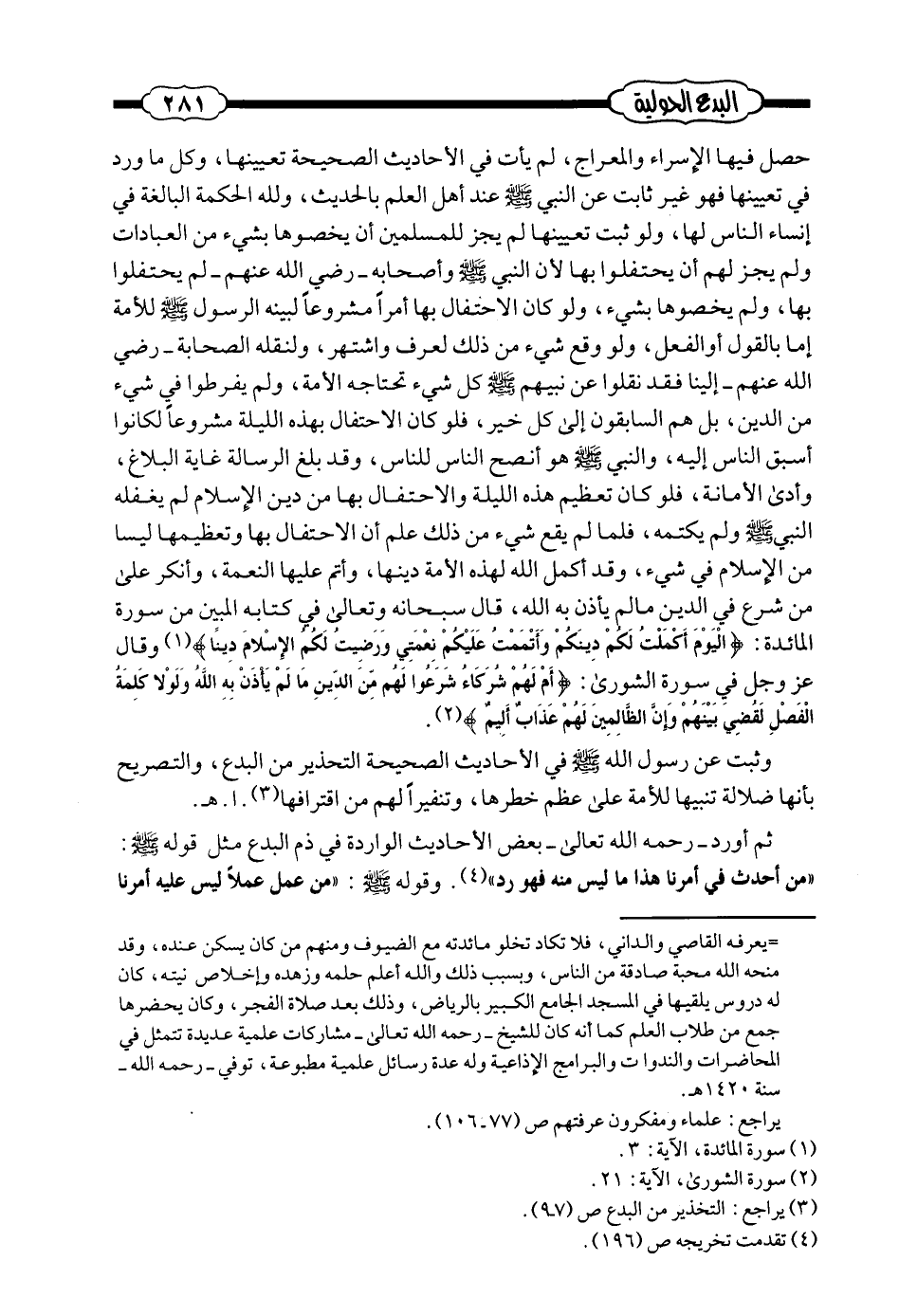 (¬3) - يراجع: التحذير من البدع ص (7-9) .