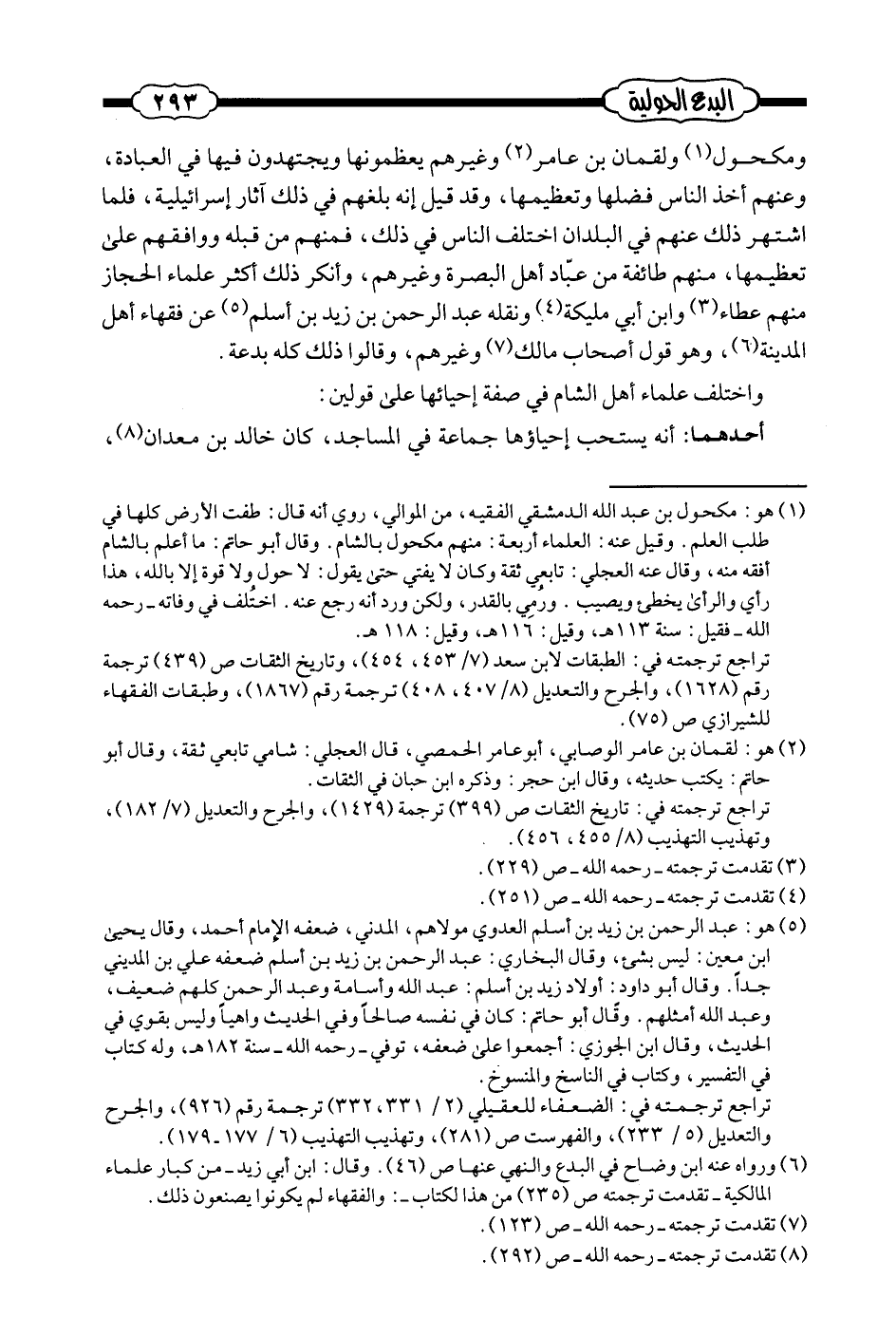 (¬1) - ورواه عنه ابن وضاح في البدع والنهي عنها ص (46) . وقال: ابن أبي زيد - من كبار علماء المالكية - والفقهاء لم يكونوا يصنعون ذلك.