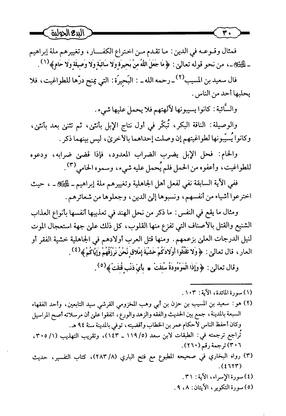 قال سعيد بن المسيب- رحمه الله-: البحيرة: التي يمنح درّها للطواغيت، فلا يحلبها أحد من الناس.
