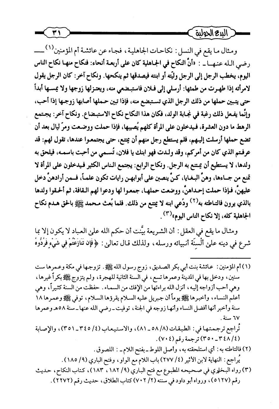 ودعي ابنه لا يمتنع من ذلك. فلما بُعث محمد صلى الله عليه وسلم بالحق هدم نكاح الجاهلية كله، إلا نكاح الناس اليوم)) (¬2) .
