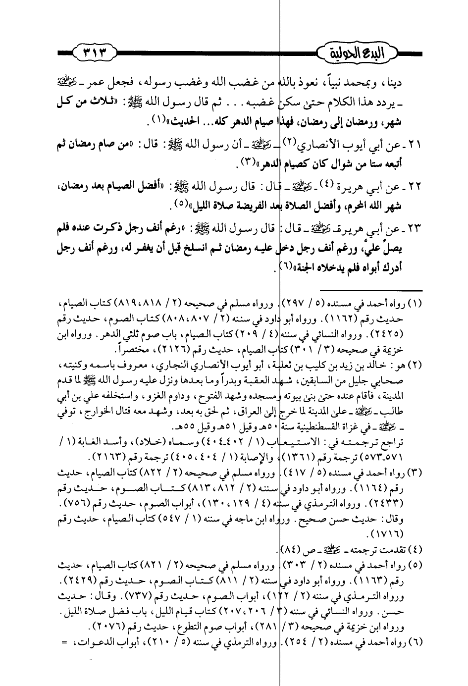 (¬2) -رواه أحمد في مسنده (5/417) ،. ورواه مسلم في صحيحه (2/822) كتاب الصيام، حديث رقم (1164) . ورواه أبو داود في سننه (2/812، 813) كتاب الصوم، حديث رقم (2433) ، ورواه الترمذي في سننه (4/129، 130) ، أبواب الصوم، حديث رقم (756) . وقال: حديث حسن صحيح. ورواه ابن ماجه في سننه (1/547) كتاب الصيام، حديث رقم (1716) .