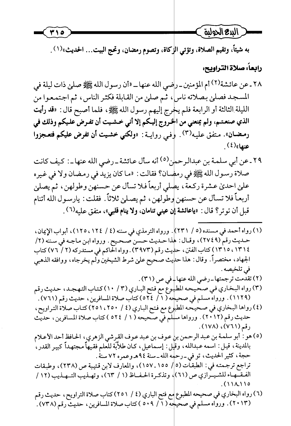 (¬3) - رواه البخاري في صحيحه المطبوع مع فتح الباري (4/250، 251) كتاب صلاة التراويح، حديث (2012) ورواه مسلم في صحيحه (1/524) ، كتاب صلاة المسافرين، حديث رقم (761) (178) .