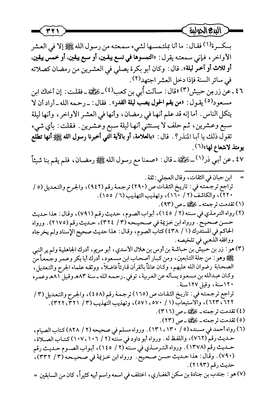 بكرة فقال: ما أنا بملتمسها لشيء سمعته من رسول الله صلى الله عليه وسلم إلا في العشر الأواخر، فإني سمعته يقول: ((التمسوها في تسع يبقين، أو سبع يبقين، أو خمس يبقين، أو ثلاث أو آخر ليلة)) . قال: وكان أبو بكرة يصلي في العشرين من رمضان كصلاته في سائر السنة فإذا دخل العشر اجتهد (¬1) .