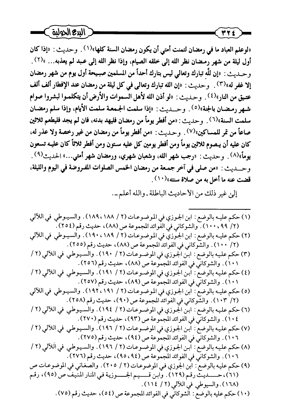 (¬10) - حكم عليه بالوضع: الشوكاني في الفوائد المجموعة ص (54) ، حديث رقم (75) .