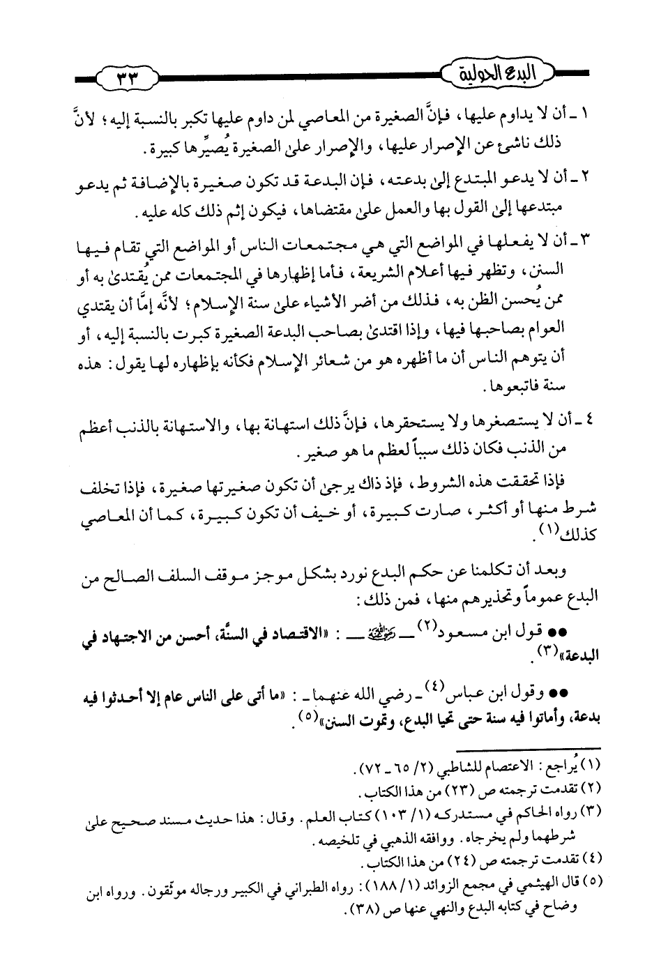 (¬3) - قال الهيثمي في مجمع الزوائد (1/188) : رواه الطبراني في الكبير ورجاله موثّقون. ورواه ابن وضاح في كتابه البدع والنهي عنها ص (38) .