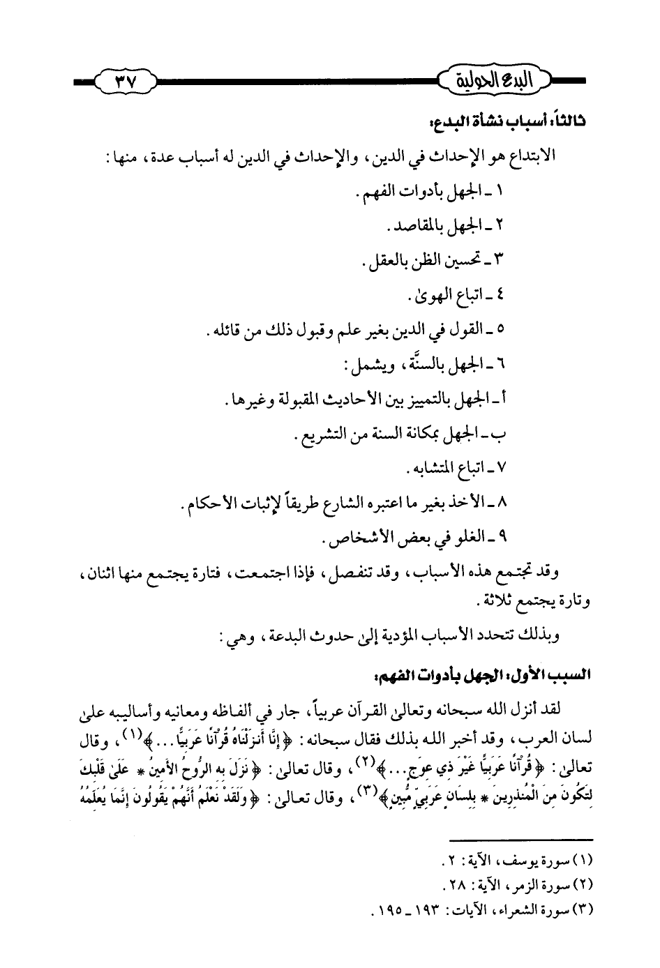 وبذلك تتحدد الأسباب المؤدية إلى حدوث البدعة، وهي: