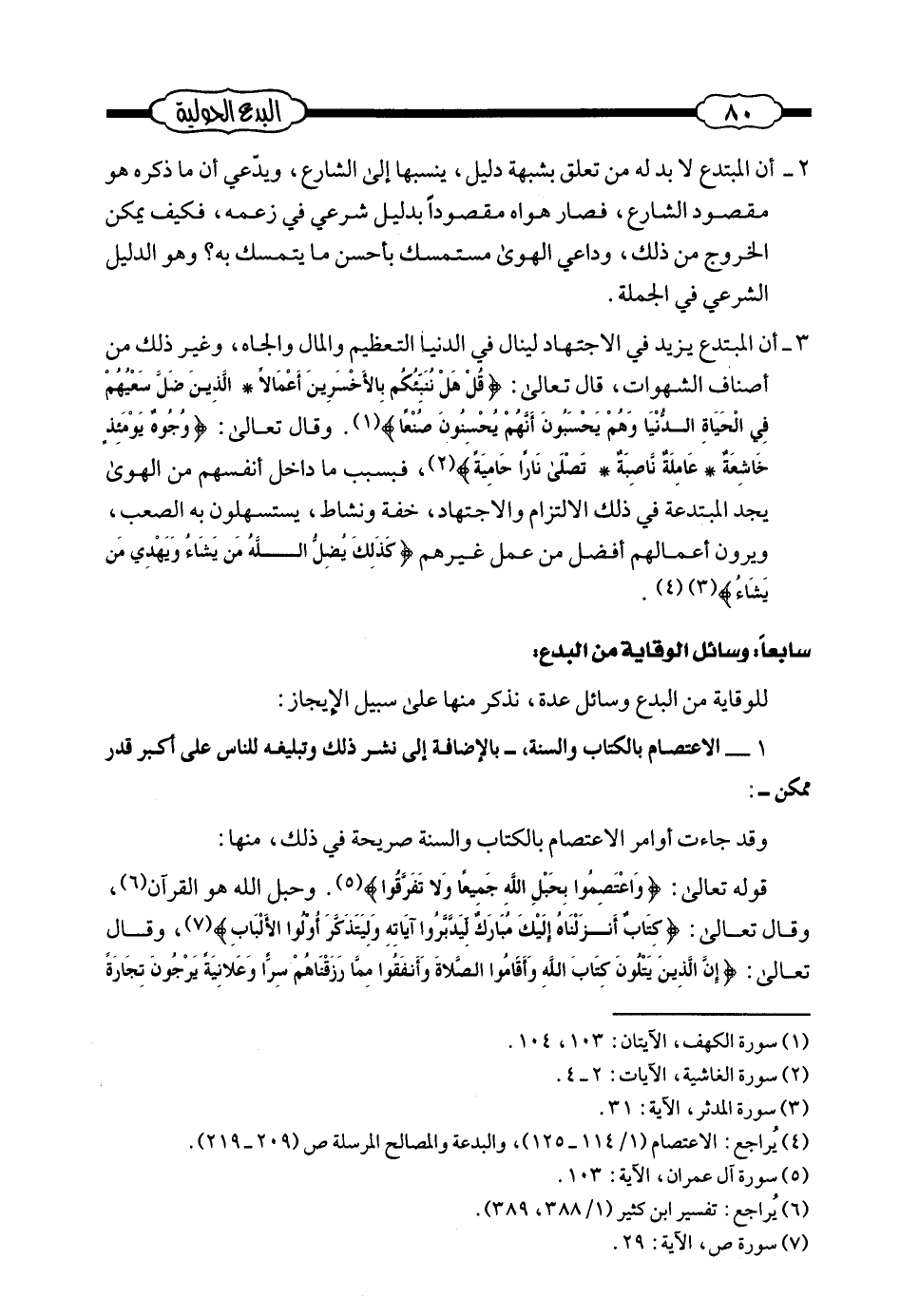 وقال تعالى: {وُجُوهٌ يَوْمَئِذٍ خَاشِعَةٌ * وُجُوهٌ يَوْمَئِذٍ خَاشِعَةٌ * تَصْلَى نَاراً حَامِيَةً} (¬2) ، فسبب ما داخل أنفسهم من الهوى يجد المبتدعة في ذلك الالتزام والاجتهاد، خفة ونشاط، يستسهلون به الصعب، ويرون أعمالهم أفضل من عمل غيرهم {كَذَلِكَ يُضِلُّ اللَّهُ مَنْ يَشَاءُ وَيَهْدِي مَنْ يَشَاءُ} (¬3) .. (¬4)