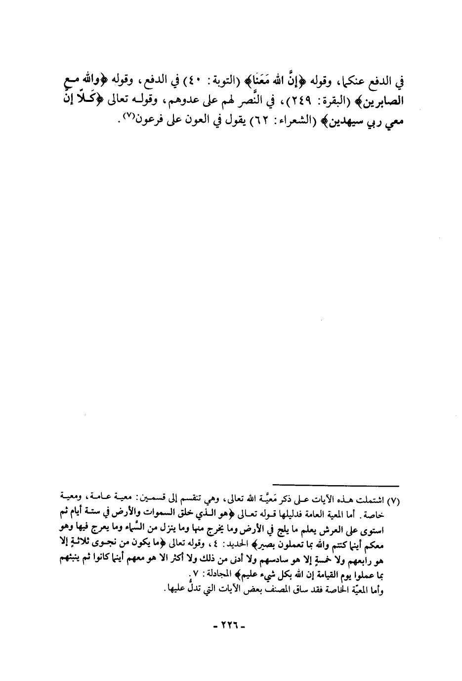 فِي الدفع عنكما، وقوله: {إِنَّ اللَّهَ مَعَنَا} فِي الدفع، وقوله: وَاللَّهُ مَعَ الصَّابِرِينَ سورة البقرة