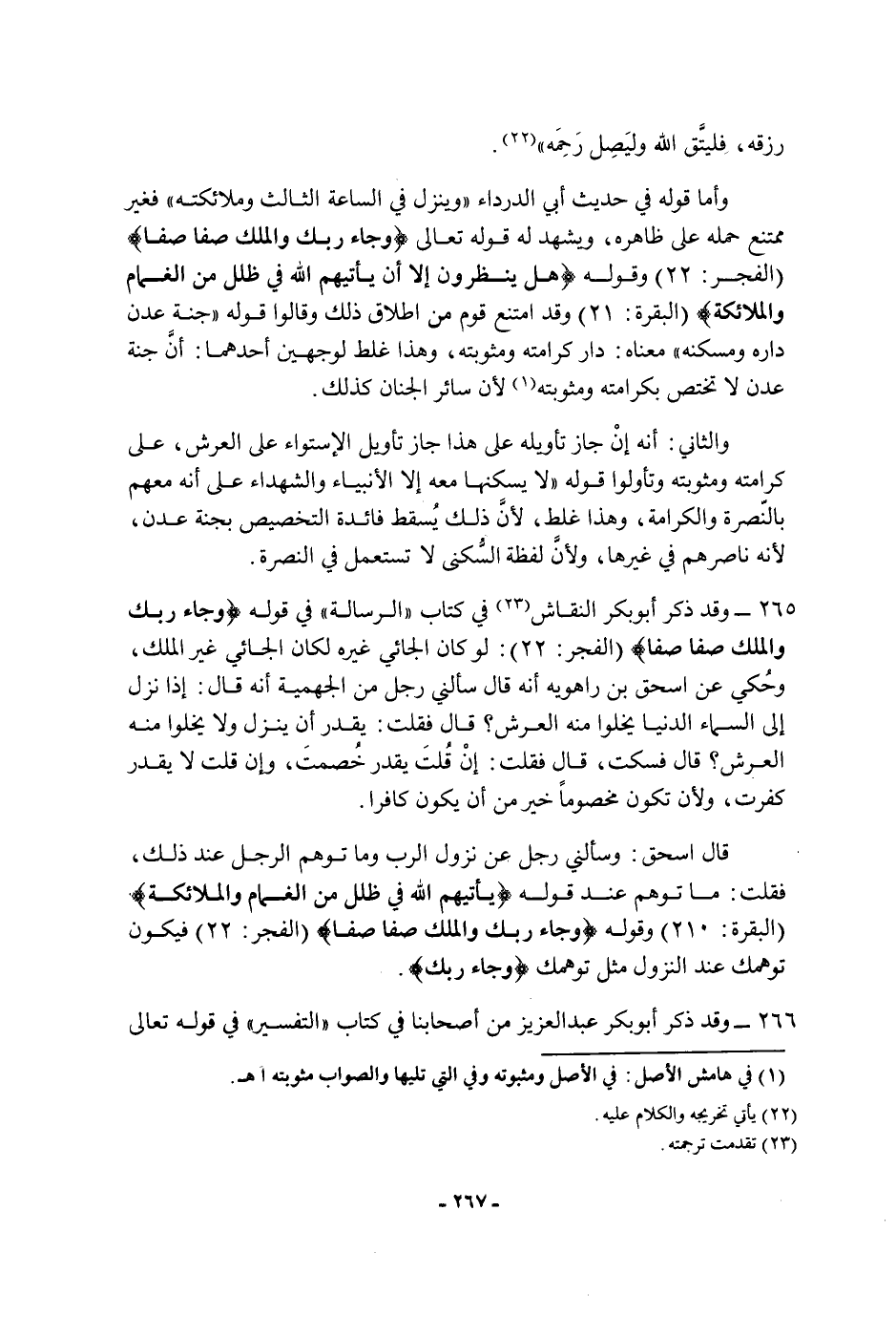266 - وقد ذكر أَبُو بكر عبد العزيز من أصحابنا فِي كتاب التفسير فِي قوله تَعَالَى:
