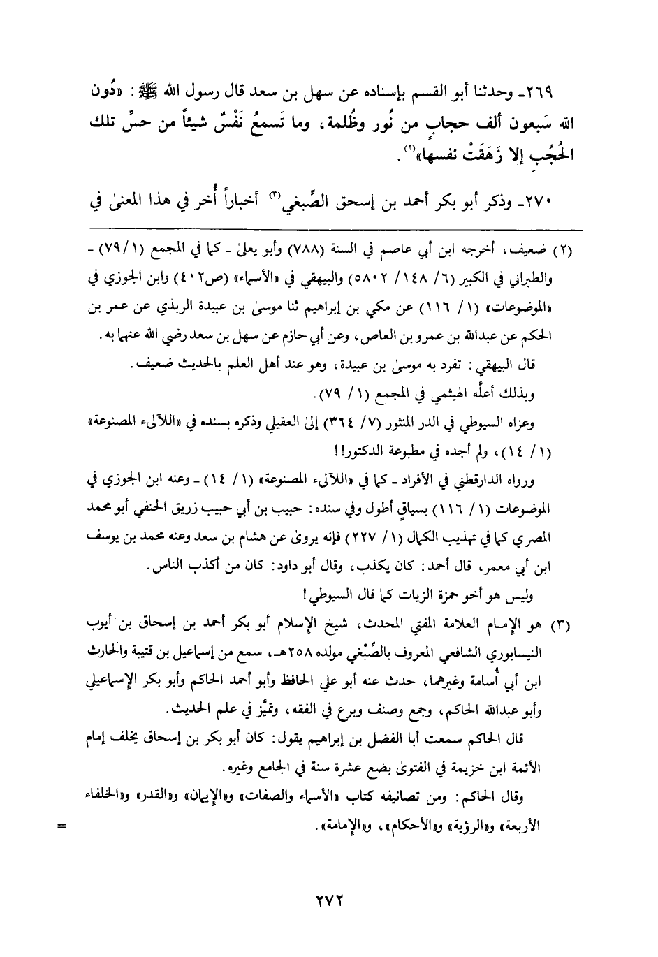 270 - " وَذَكَرَ أَبُو بَكْرٍ أَحْمَدُ بْنُ إِسْحَاقَ الصِّبْغِيُّ أَخْبَارًا أُخَرَ فِي هَذَا الْمَعْنَى فِي