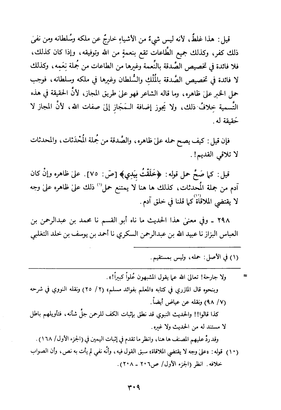 قيل: هَذَا غلط، لأَنَّهُ ليس شيء من الأشياء خارج عَن ملكه وسلطانه ومن نفى ذلك كفر، وكذلك جميع الطاعات تقع بنعمة من اللَّه وتوفيقه، وإذا كان كذلك، فلا فائدة فِي تخصيص الصدقة بالنعمة وغيرها من الطاعات من جملة نعمه، وكذلك لا فائدة فِي تخصيص الصدقة بالملك والسلطان وغيرها فِي ملكه وسلطانه، فوجب
