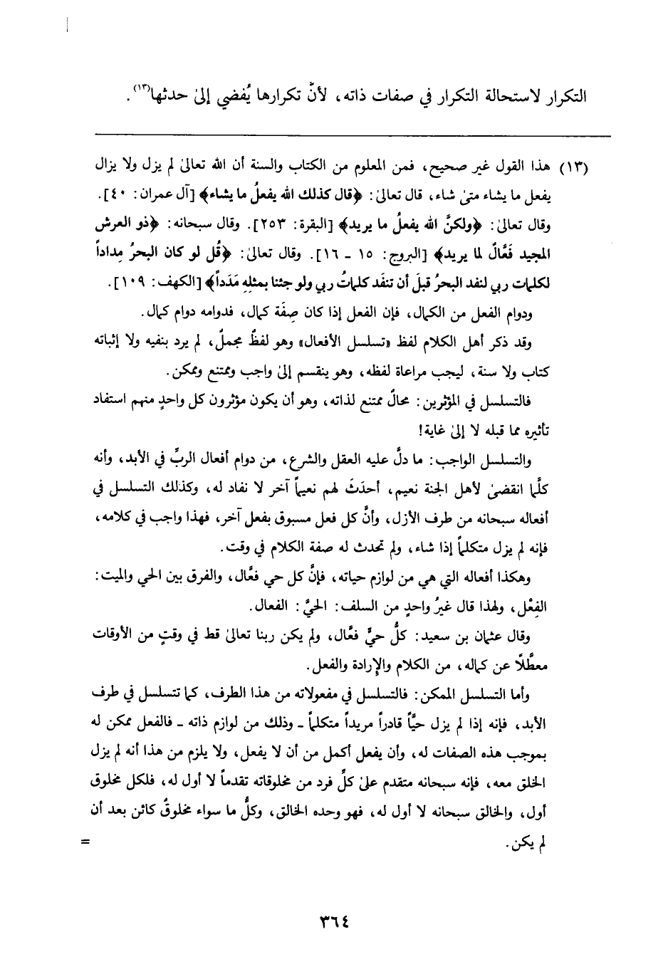 التكرار لاستحالة التكرار فِي صفات ذاته، لأَنَّ تكرارها يفضي إِلَى حدثها