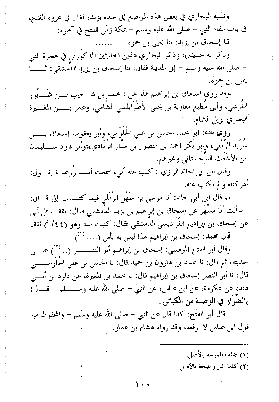 قال محمد: إسحاق بن إبراهيم هذا ليس به بأس (....).