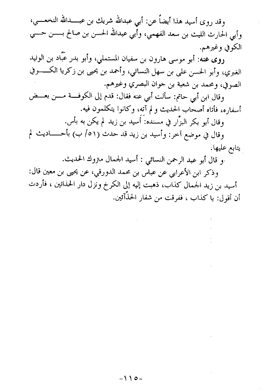 وقال أبو عبد الرحمن النسائي: أسيد الجمال متروك الحديث.