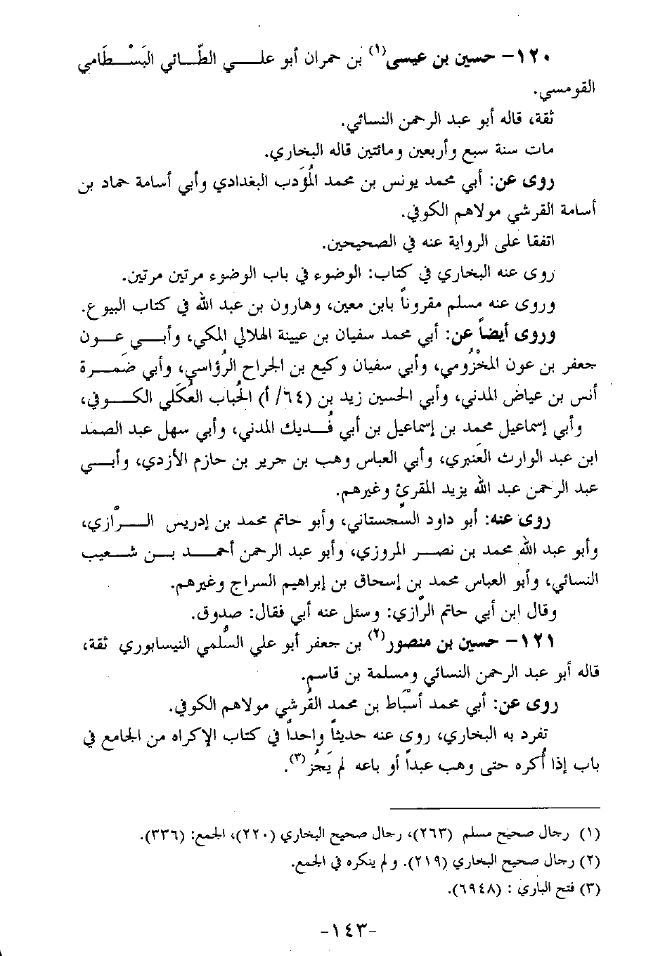 120 - حسين بن عيسى بن حمران أبو علي الطائي البسطامي القومسي.