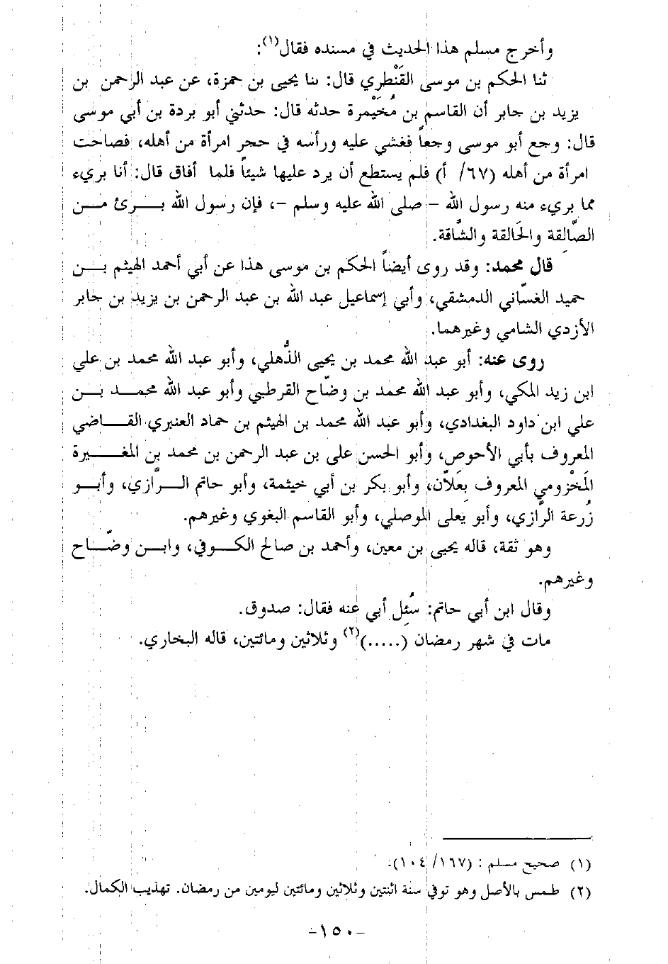قال محمد: وقد روي أيضًا الحكم بن موسى هذا عن أبي أحمد الهيثم بن حميد الغساني الدمشقي، وأبي إسماعيل عبد الله بن عبد الرحمن بن يزيد بن جابر الأزدي الشامي وغيرهما.