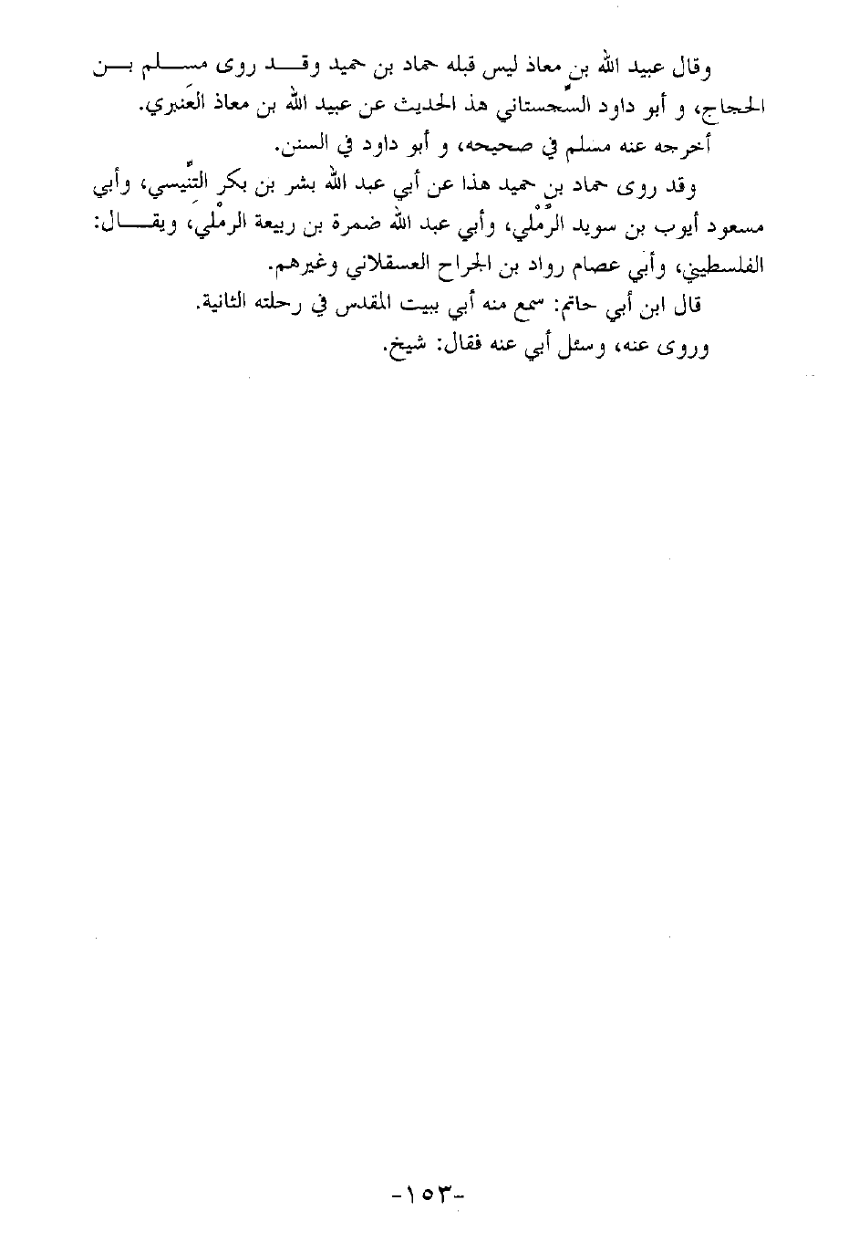 وقال عبيد الله بن معاذ ليس قبله حماد بن حميد وقد روي مسلم بن الحجاج، وأبو داود السجستاني هذا الحديث عن عبيد الله بن معاذ العنبري.