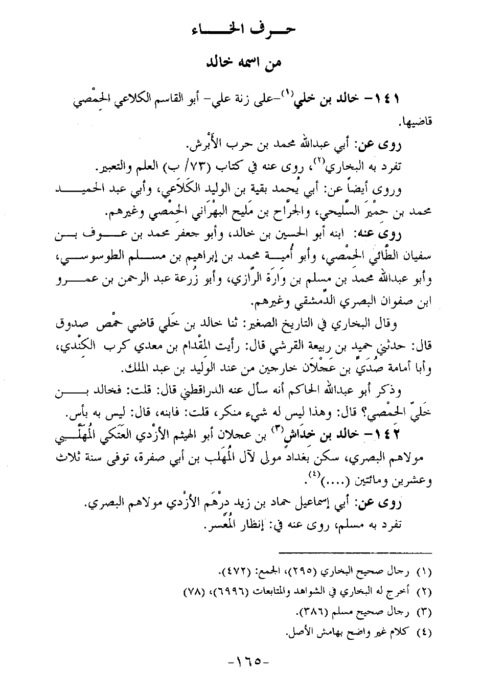 142 - خالد بن خداش بن عجلان أبو الهيثم الأزدي العتكي المهلبي مولاهم البصري، سكن بغداد مولى لآل المهلب بن أبي صفرة، توفي سنة ثلاث وعشرين ومائتين (....).