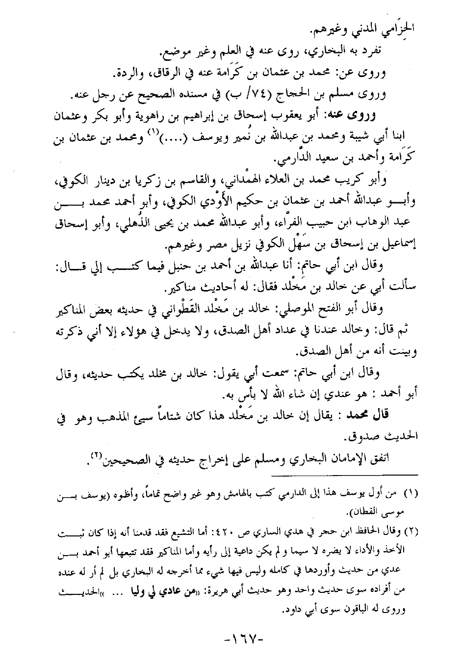 وقال أبو الفتح الموصلي: خالد بن مخلد القطواني في حديثه بعض المناكير ثم قال: وخالد عندنا في عداد أهل الصدق، ولا يدخل في هؤلاء إلا أني ذكرته وبينت أنه من أهل الصدق.