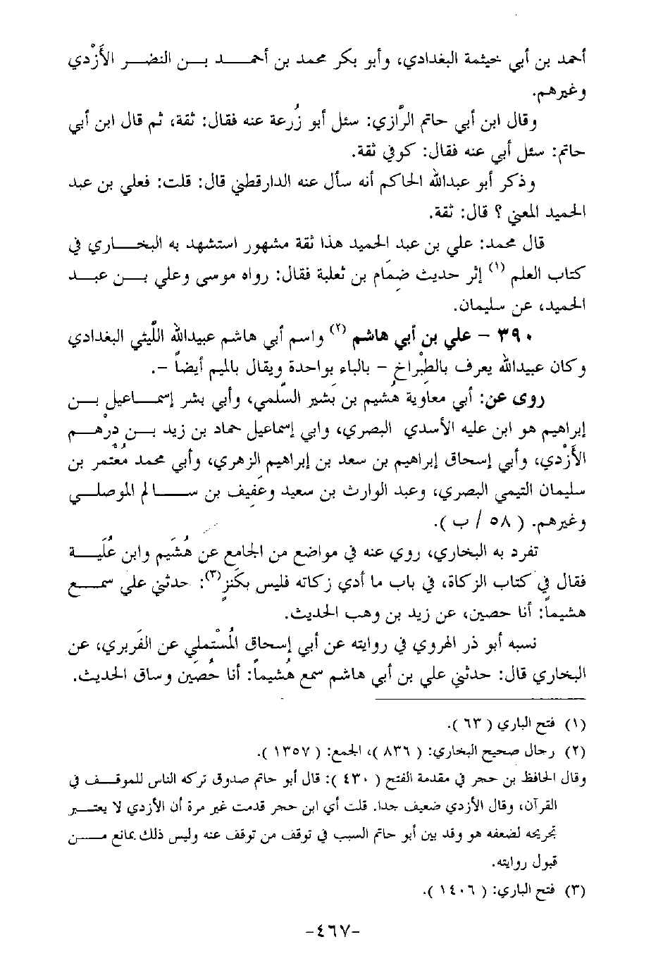 قال محمد: علي بن عبد الحميد هذا ثقة مشهور استشهد به البخاري في كتاب العلم إثر حديث ضمام بن ثعلبة فقال: رواه موسى وعلي بن عبد الحميد، عن سليمان.