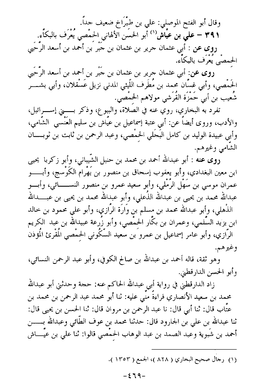 391 - علي بن عياش أبو الحسن الألهاني الحمصي يعرف بالبكاء.