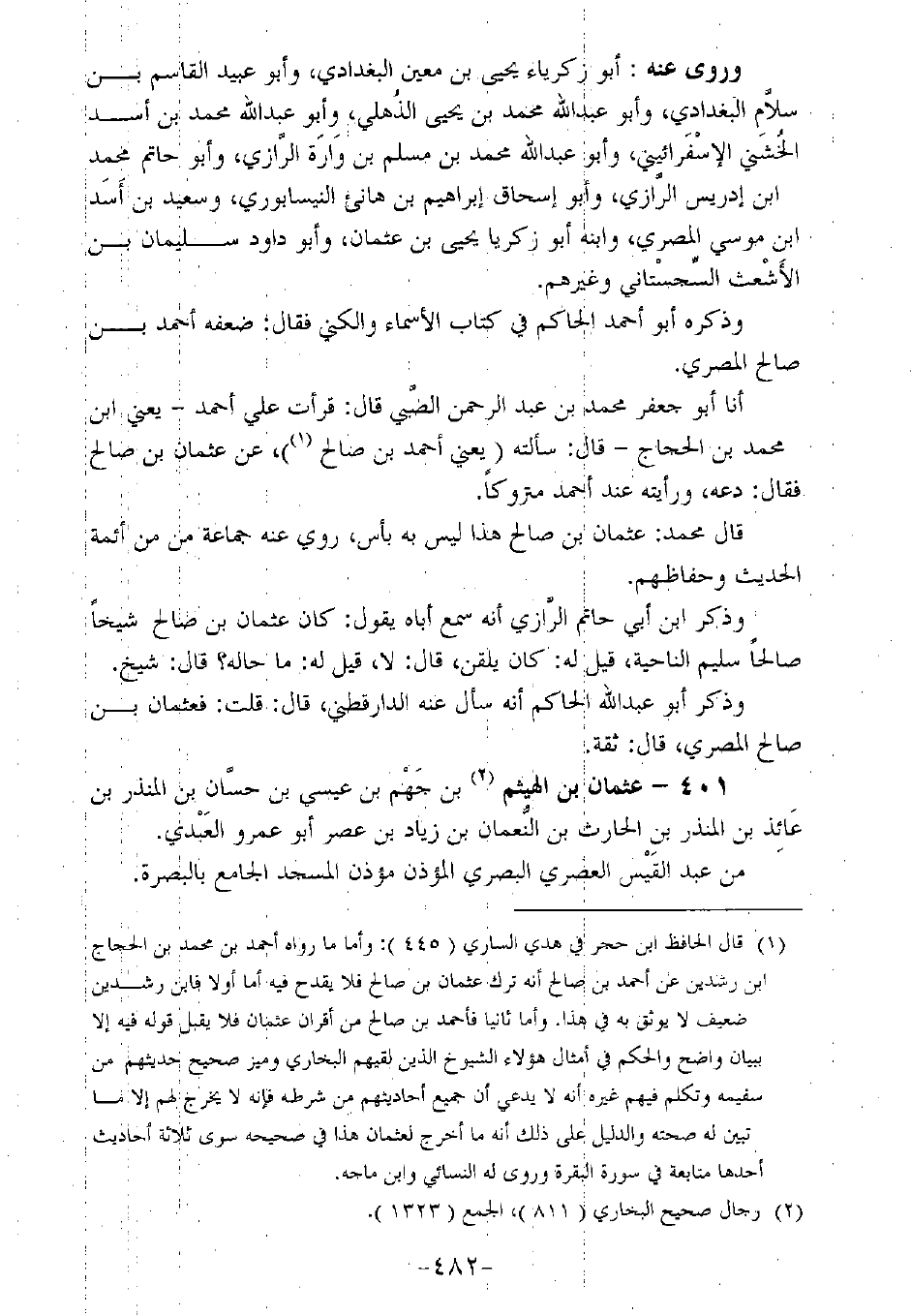 قال محمد: عثمان بن صالح هذا ليس به بأس، روي عنه جماعة من من أئمة الحديث وحفاظهم.