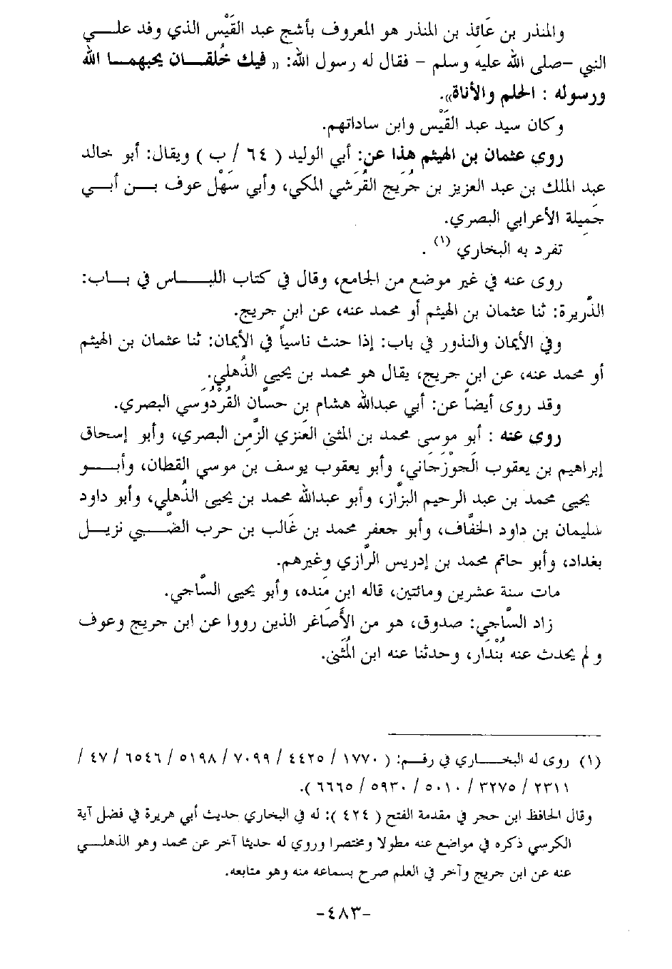 زاد الساجي: صدوق، هو من الأصاغر الذين رووا عن ابن جريج وعوف ولم يحدث عنه بندار، وحدثنا عنه ابن المثنى.