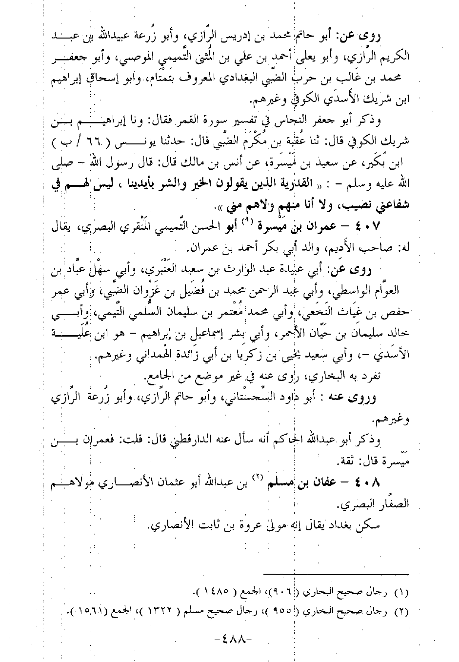 408 - عفان بن مسلم بن عبد الله أبو عثمان الأنصاري مولاهم الصفار البصري.