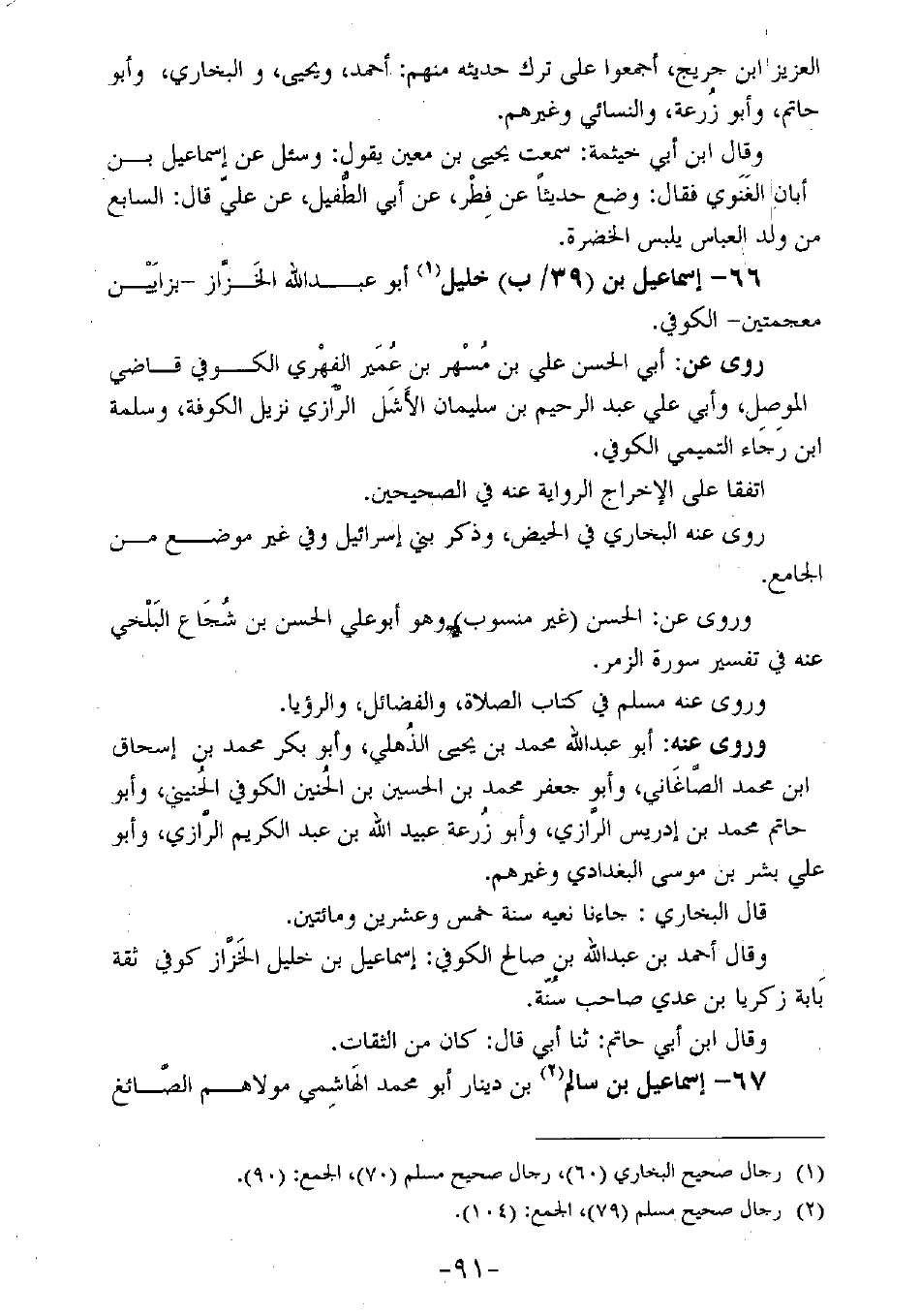 66 - إسماعيل بن خليل أبو عبد الله الخزاز ـ بزايين معجمتين ـ الكوفي.