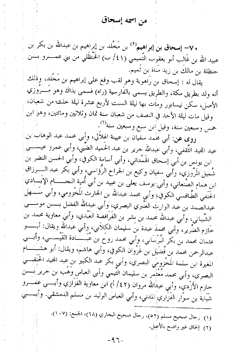 70 - إسحاق بن إبراهيم بن مخلد بن إبراهيم بن عبد الله بن بكر بن عبيد الله بن غالب أو يعقوب التميمي الحنظلي من بني عمرو بن حنظلة بن مالك بن زيد مناة بن تميم.