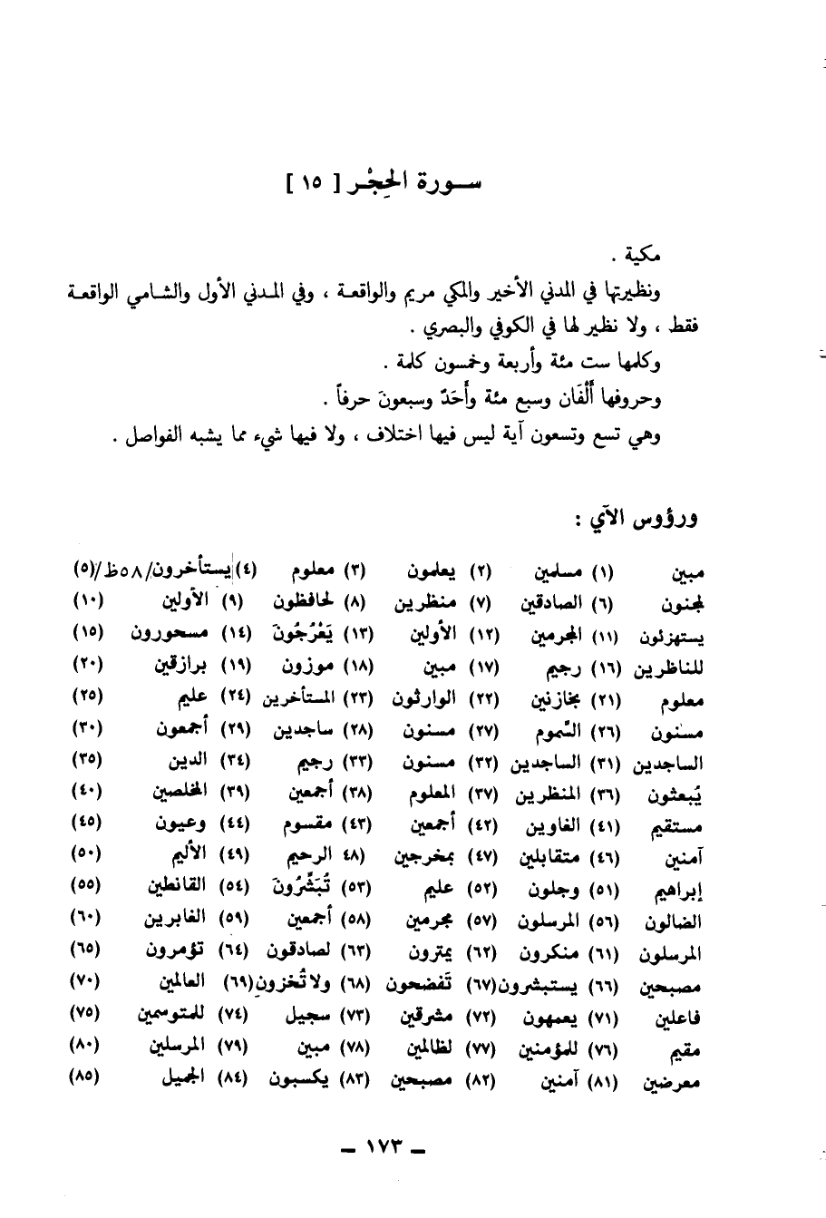 ونظيرتها فِي الْمدنِي الْأَخير والمكي مَرْيَم والواقعة وَفِي الْمدنِي الأول والشامي الْوَاقِعَة فَقَط وَلَا نَظِير لَهَا فِي الْكُوفِي والبصري