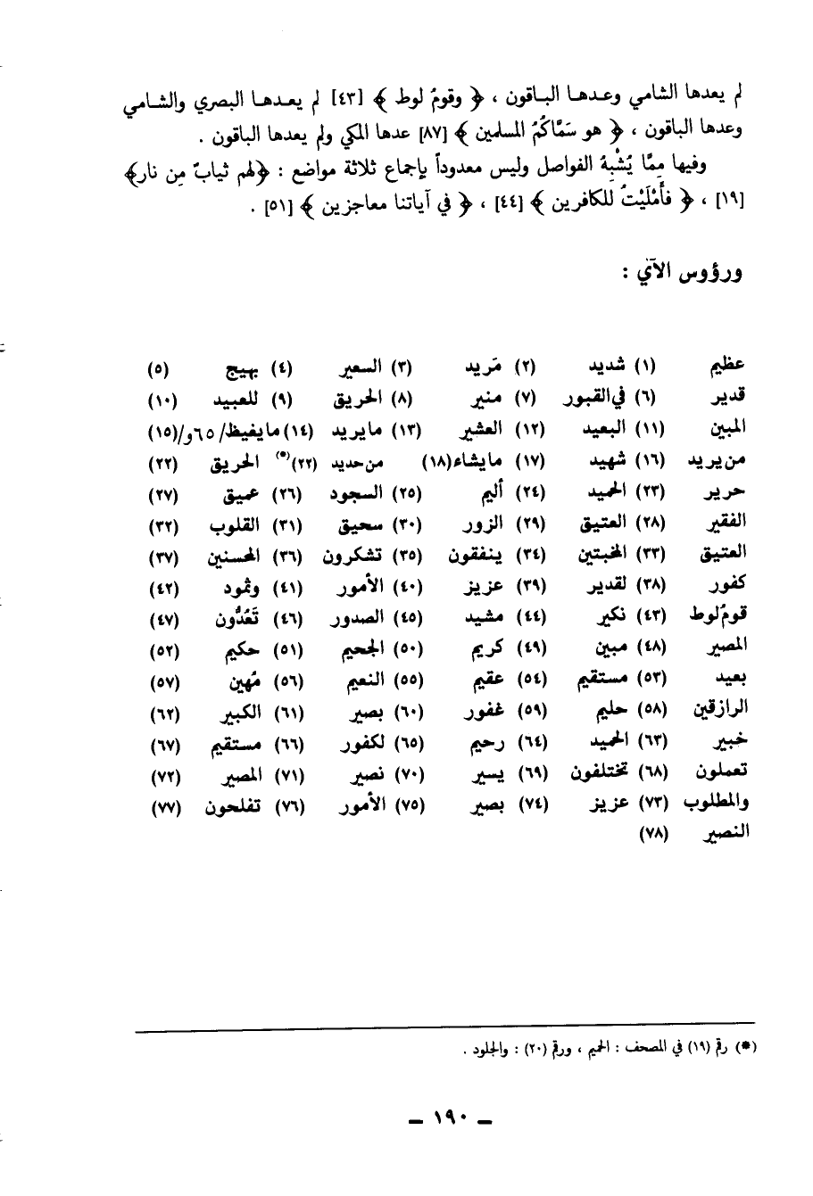 لم يعدها الشَّامي وعدها الْبَاقُونَ ( {وَقوم لوط} ) لم يعدها الْبَصْرِيّ والشامي وعدها الْبَاقُونَ ( {هُوَ سَمَّاكُم الْمُسلمين} ) عدهَا الْمَكِّيّ وَلم يعدها الْبَاقُونَ