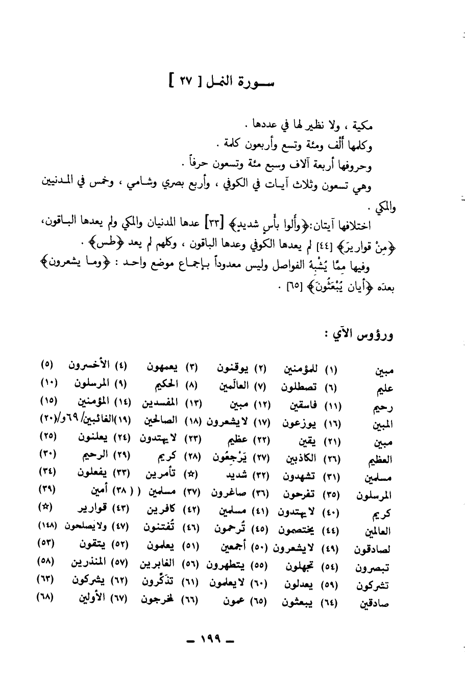 اختلافها آيتان ( {وأولو بَأْس شَدِيد} ) عدهَا المدنيان والمكي وَلم يعدها الْبَاقُونَ ( {من قَوَارِير} ) لم يعدها الْكُوفِي وعدها الْبَاقُونَ وَكلهمْ لم يعد ( {طس} )