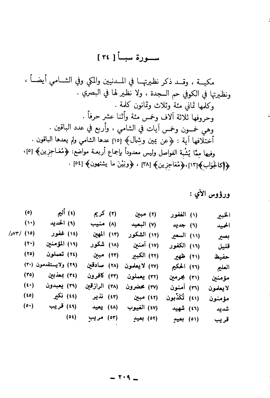 وفيهَا مِمَّا يشبه الفواصل وَلَيْسَ معدودا بِإِجْمَاع اربعة مَوَاضِع ( {معاجزين} كالجواب) ( {معاجزين} وَبَين مَا يشتهون)