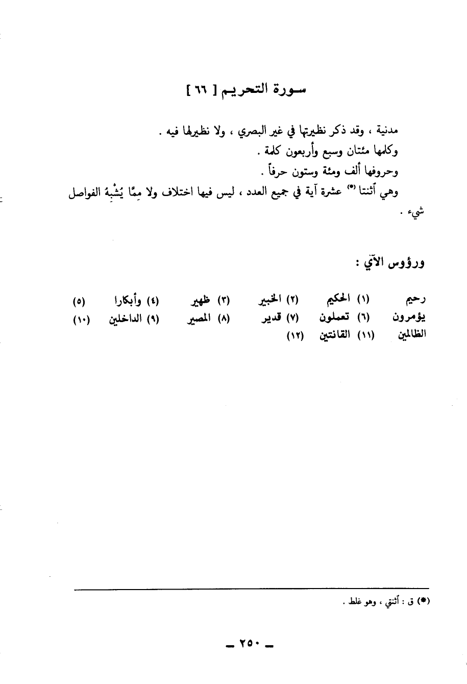 وَهِي اثْنَتَا عشرَة آيَة فِي جَمِيع الْعدَد لَيْسَ فِيهَا اخْتِلَاف وَلَا مِمَّا يشبه الفواصل شَيْء