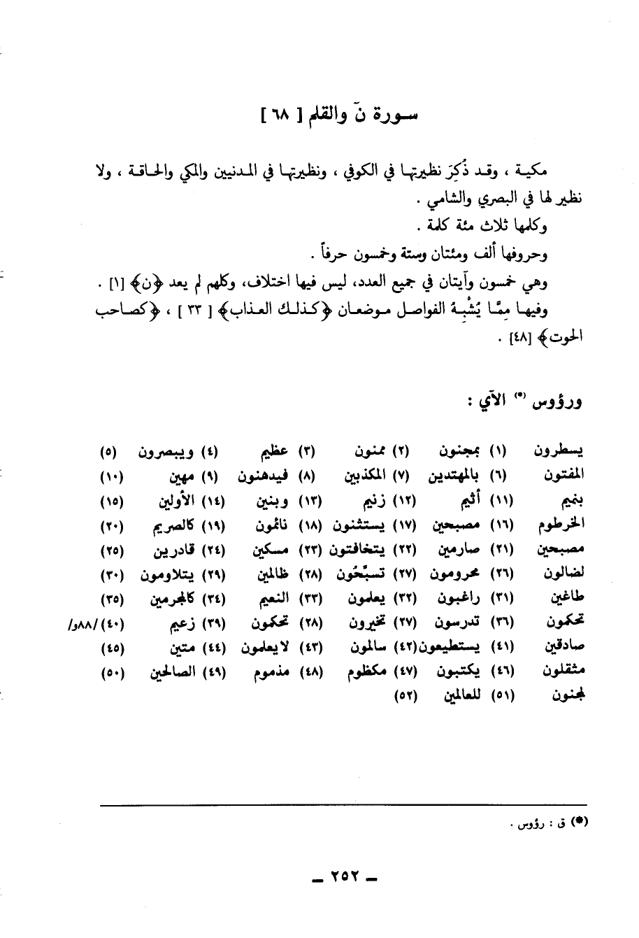وَهِي خَمْسُونَ وآيتان فِي جَمِيع الْعدَد لَيْسَ فِيهَا اخْتِلَاف وَكلهمْ لم يعد ( {ن} )